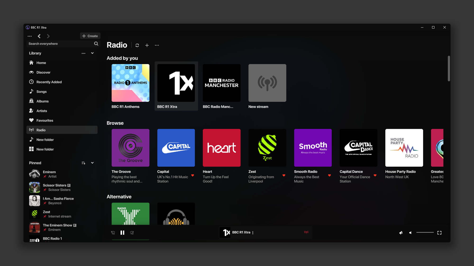 Listen to Internet Radio streams through the Radio tab! With over 25 stations by default, you can also add your own. Includes support for .m3u, .m3u8. See here for more information