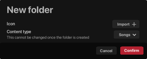 The layout for a folder with the content type Songs will be identical to the current "Songs" page that you use regularly. Here, songs are in a list view with customisable columns, which can be resized, moved, and new columns can be added or removed. You can sort any column by ascending or descending order.